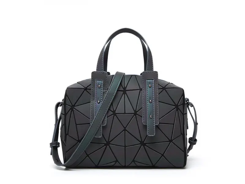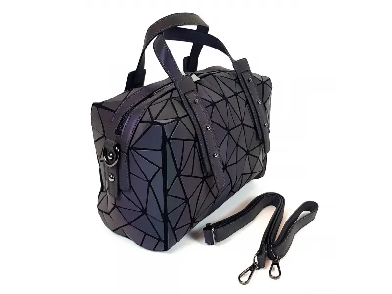 Интересна хамелеонова чанта. Дамска чанта от нов вид материя - хамелеонова. Интересна дамска чанта - хамелеон с геометрични фигури. Хамелеонова чанта от eBags.bg