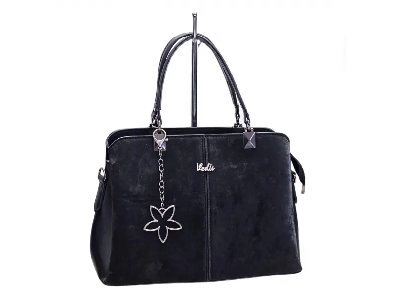 Удобна дамска чанта от качествена изкуствена кожа. Черна дамска чанта с интересен дизайн с удобни отделения. Дамска чанта произведена в България с удобни дръжки.