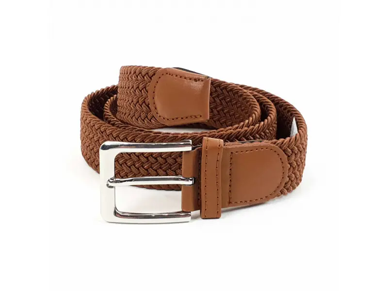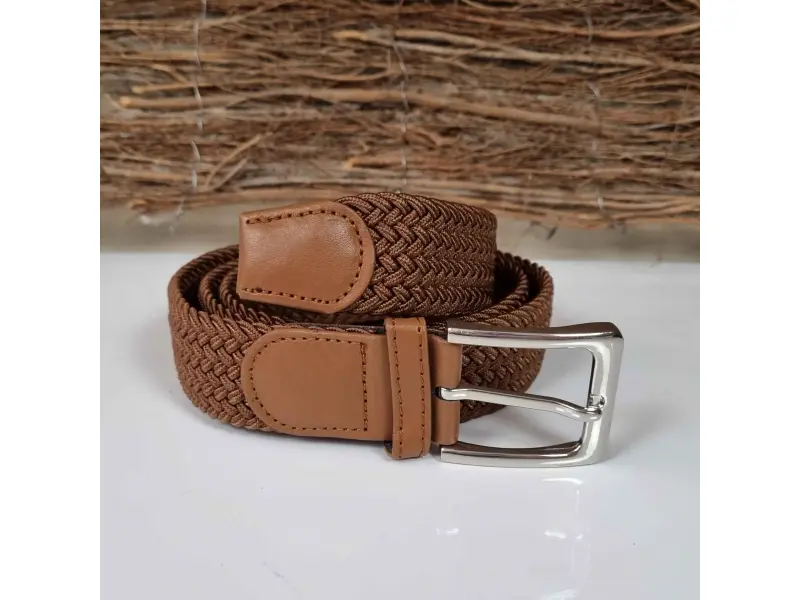 Кафяв ластичен колан със здрава плетка и метална катарама. Колан подходящ за мъже и жени изработен със специална технологията, която не позволява колана да се разтяга повече от предвидимото. Предимство е, че може да се закопчава по цялата дължина на колана.