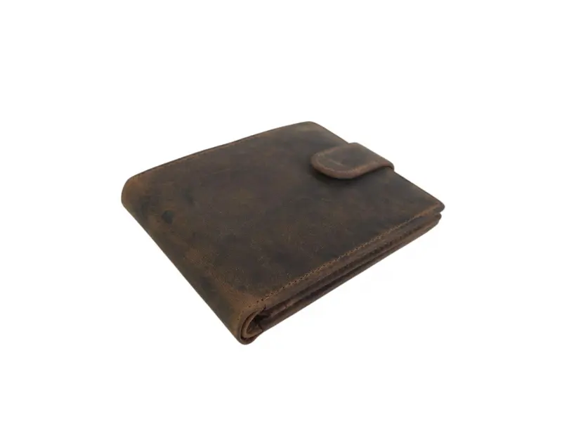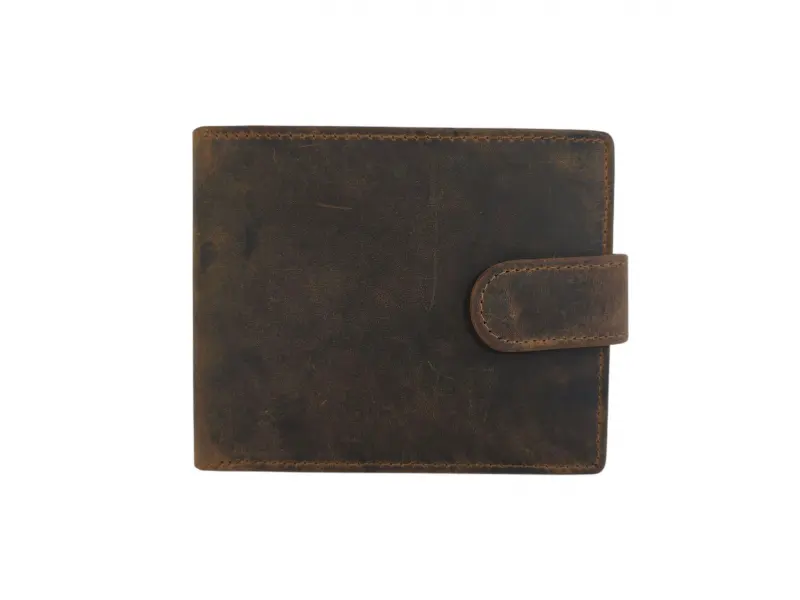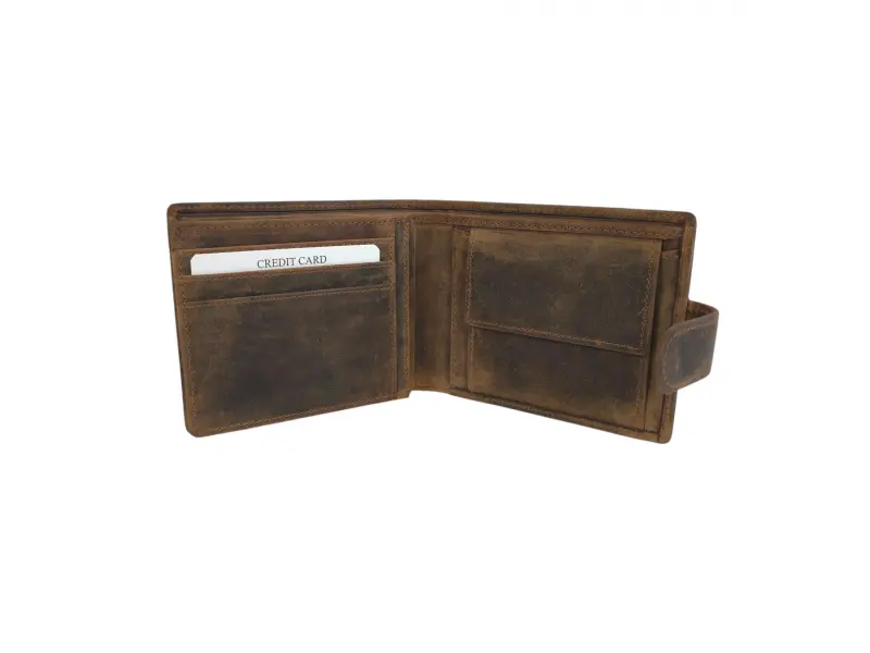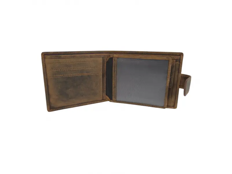 Кожен портфейл със закопчалка - Кафяв мъжки портфейл от специално обработена естествена hunter кожа. - Отделение за банкноти. - Слотове за карти и лични документи. - Отделение за монети.