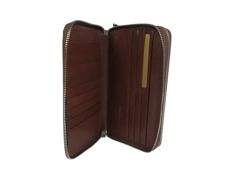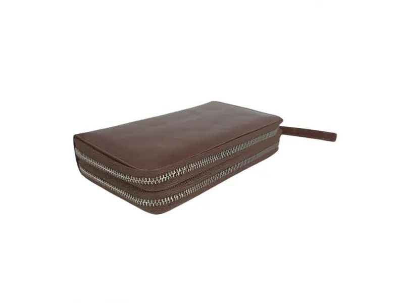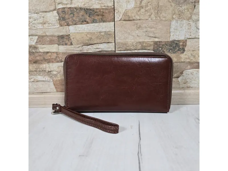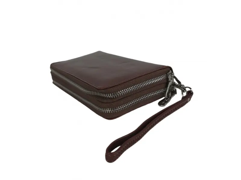 Стилен мъжки портфейл с два цип - Мъжки портфейл от качествена естествена кожа. - Затваряне с цип. - Отделенение за банкноти. - Отделение за карти и лични документи. - Отделение за монети. - Дръжка за носене в ръка.