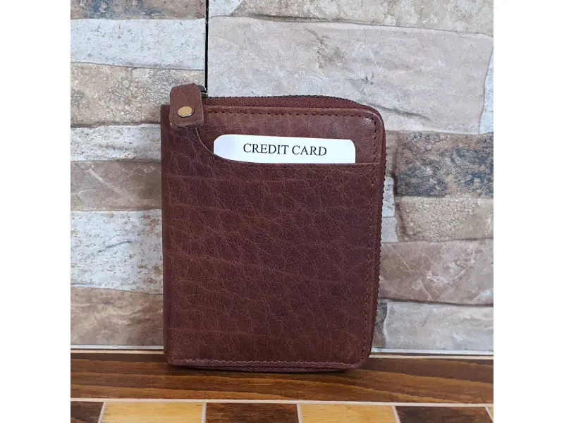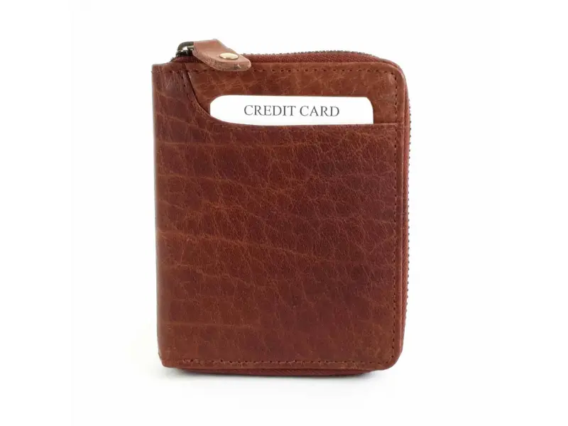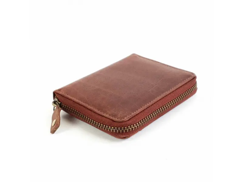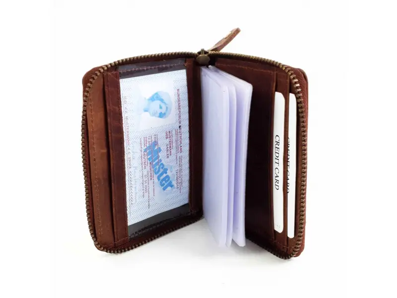 Кафяв визитник от естествена кожа с цип | Аксесоари (ePazar.bg)