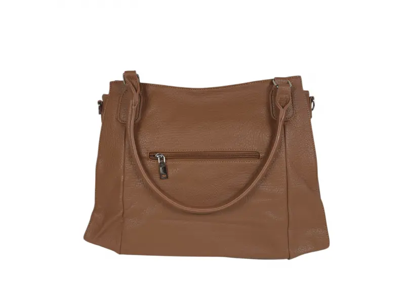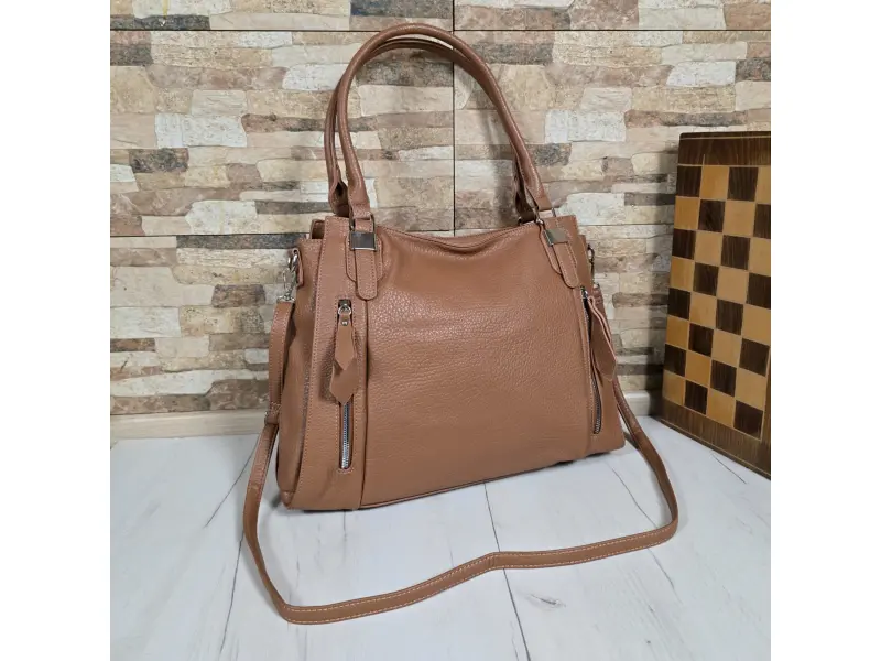 Качествена дамска чанта - Дамска чанта от еко кожа. - Едно основно отделение разделено да две от джоб с цип. - Малък вътрешен джоб с цип. - Отделение за телефон и ключове. - Заден джоб с цип. - Два предни джоба с цип. - Удобни презрамки. - Допълнителна дълга дръжка.