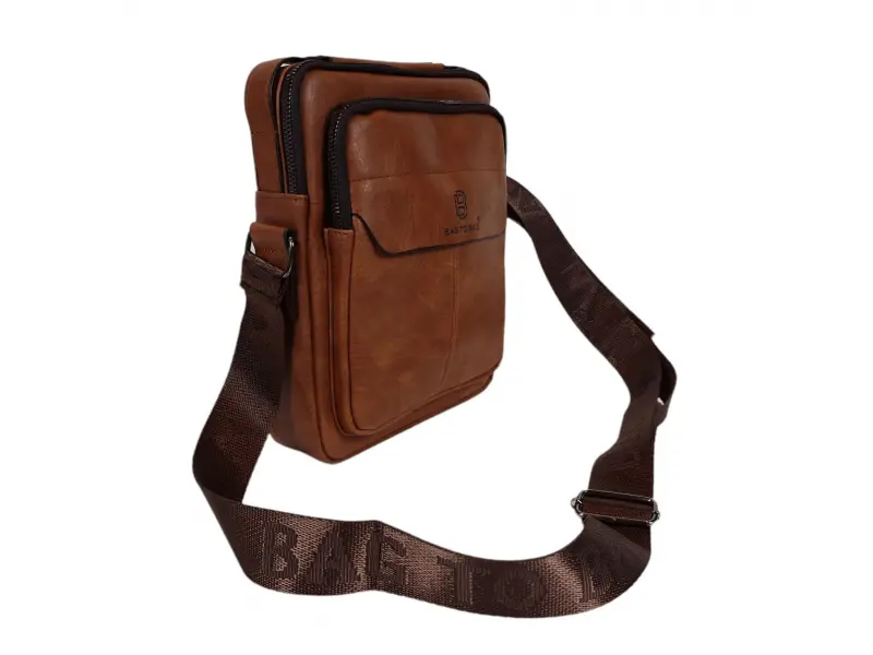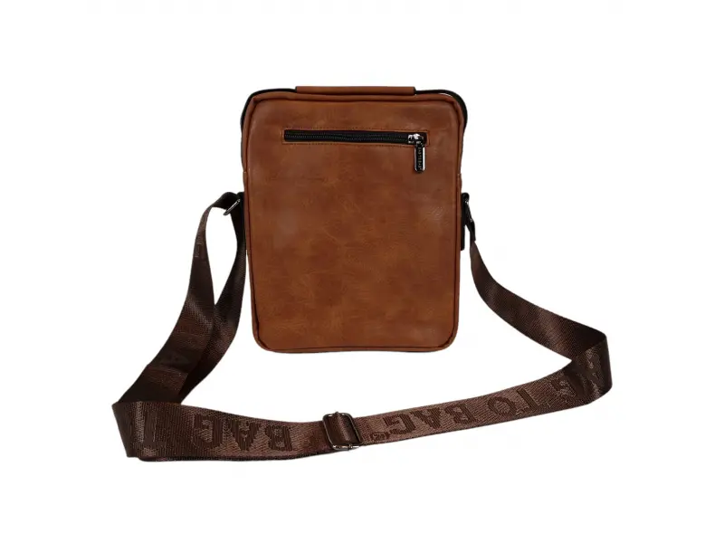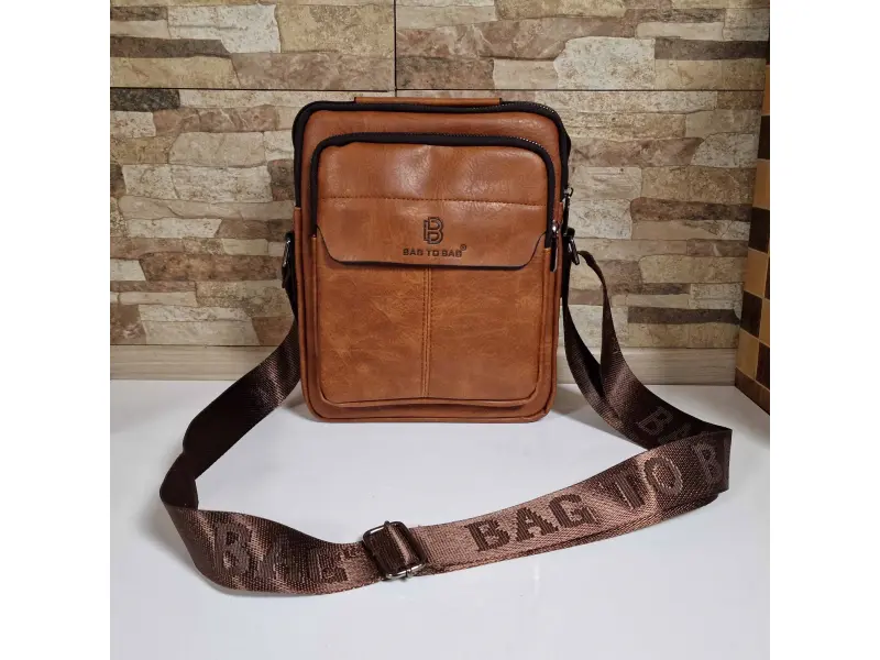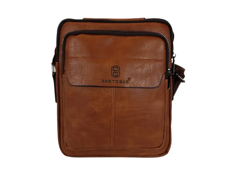 Мъжка чанта от качествена еко кожа в кафяв цвят. Удобна чанта с едно основно отделение с цип, малко вътрешно джобче с цип, два предни джоба с цип и заден джоб с цип. Здрава мъжка чанта с удобна дръжка за носене в ръка и регулираща се дълга дръжка.