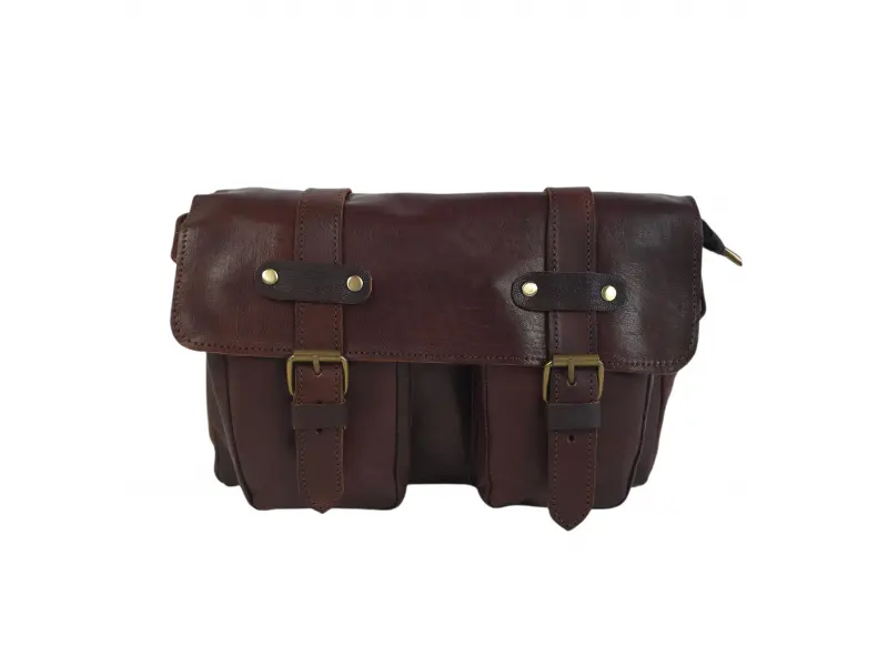 Здрава мъжка чанта от естествена кожа в интересен кафяв цвят и затваряне с метални катарами и механизъм. Качествена мъжка чанта, която е ръчна изработка внос от Мароко.