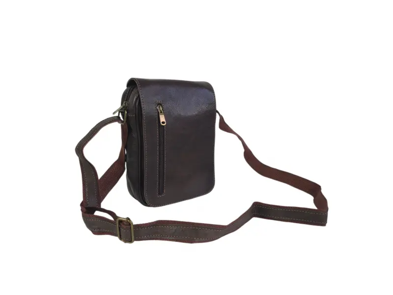 Здрава мъжка чанта - Мъжка чанта от естествена кожа. - Едно основно отделение с цип. - Вътрешен джоб с цип. - Преден джоб с цип. - Преден джоб под капака с цип. - Заден джоб с цип. - Дулга регулираща се дръжка.