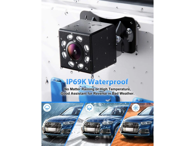 Водоустойчива цветна CCD камера за задно виждане с вграден нощен режим (8 IR LED), която ви помага безопасно да паркирате и маневрирате дори при пълен мрак.