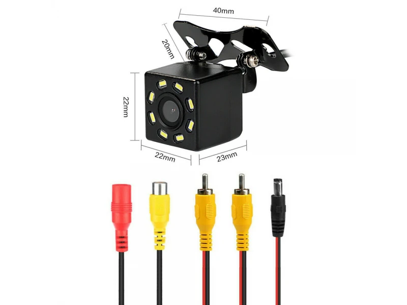 Камера за задно виждане с нощен режим 8 LED 🎥🌙Водоустойчива цветна CCD камера за задно виждане с вграден нощен режим (8 IR LED), която ви помага безопасно да паркирате и маневрирате дори при пълен мрак.Основни характеристики 🚗 Резолюция: 780×580 пиксела Захранване: DC 12V Зрителен ъгъл: 150° Сензор: 1/3″ CCD Видео сигнал: PAL/NTSC Скорост на затвора: 1/60 – 1/100 000 сек. Изходен сигнал: 1.0 Vpp, 75 Ω Баланс на бялото: Автоматичен Водоустойчивост: IP69 Размери: 40×22×22 ммКомплектът включва 📦 1× Цветна CCD камера за задно виждане 1× Видео кабел (6 м) 1× Захранващ кабел (1.5 м) 2× Винта за монтаж