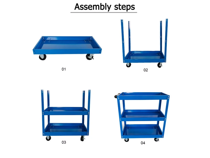 Тази количка за инструменти е идеално решение за организиране на работното пространство, осигурявайки удобен достъп до вашите инструменти и аксесоари. С три просторни рафта и здрава конструкция, тя е идеална за употреба в гаражи, работилници и други места, където е необходимо съхранение и мобилност.