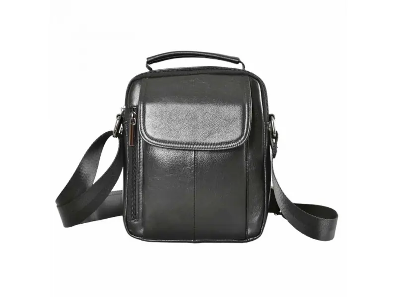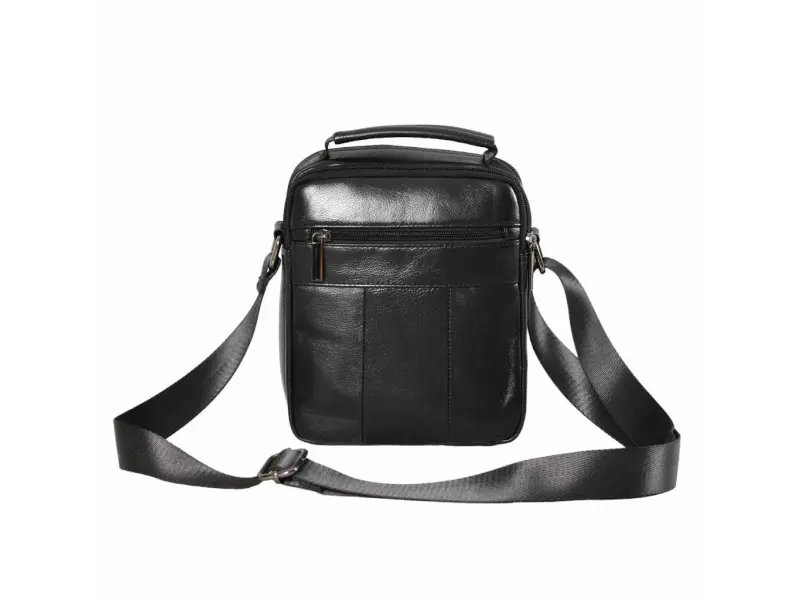 Мъжка чанта от естествена кожа - Две основни отделения с цип. - Малък вътрешен джоб с цип. - Преден джоб с цип. - Преден джоб с капак. - Заден джоб с цип. - Регулираща се презрамка. - Дръжка за носене в ръка.