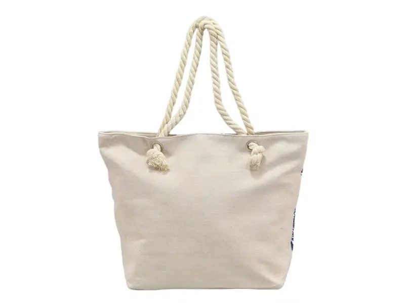 Нова малка чанта за плаж Голяма плажна чанта от текстил. Едно основно отделение с цип. Дръжки тип - въже.