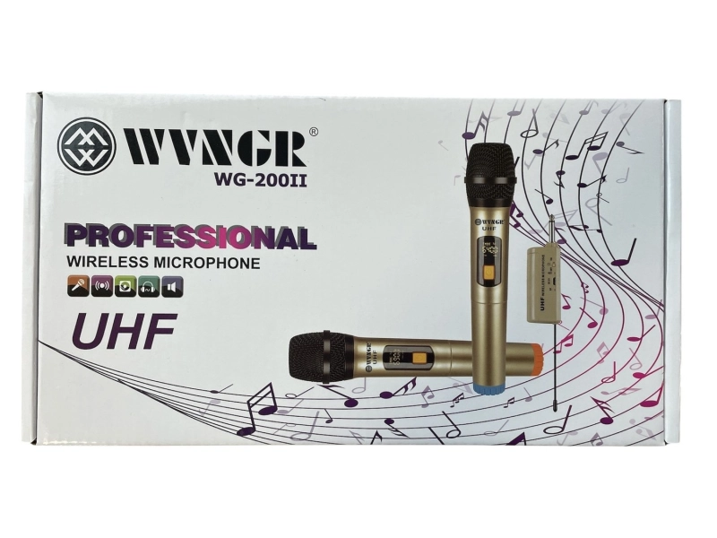 Безжичните микрофони WVNGR WG-200II са идеални за различни приложения, включително презентации, конференции, живи изпълнения и много други. Два броя висок клас безжични HiFi микрофони с приемник WVNGR WG-200II.