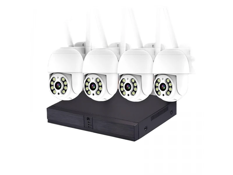 Комплект с 4 безжичени въртящи камери и NVR записващо устройство