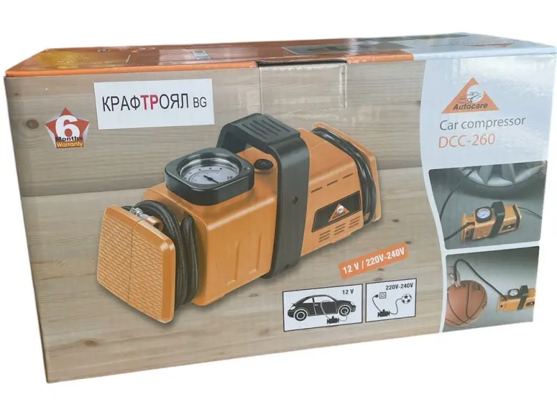 Компресор за гуми KraftRoyal 7 Bar 12V и 220V - Компактен и мощен