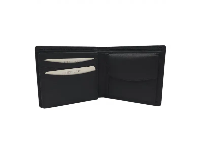 - Черен мъжки портфейл от естествена кожа.