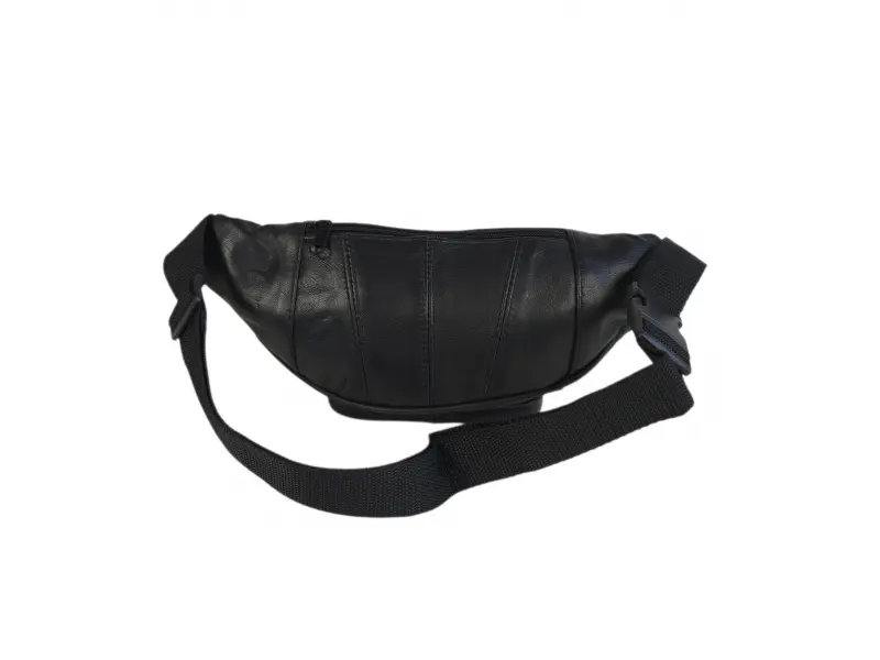 Черна чанта тип паласка - Чанта от естествена кожа. - Едно основно отделение с цип. - Два предни джоба с цип. - Два малки странични джоба с цип. - Заден джоб с цип. - Регулиращ се колан.