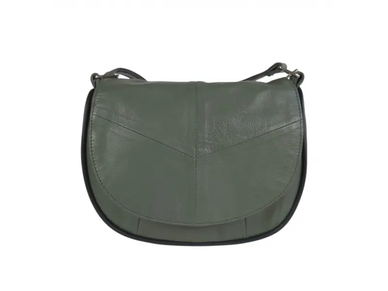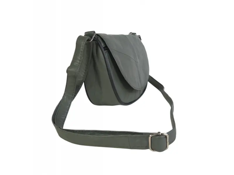 Малка дамска чанта за през рамо - Дамска чанта от естествена кожа. - Едно основно отделение с цип и капак с магнитно закопчаване. - Малко вътрешно джобче с цип. - Преден джоб под капака с цип. - Заден джоб с цип. - Регулираща се се дълга дръжка.