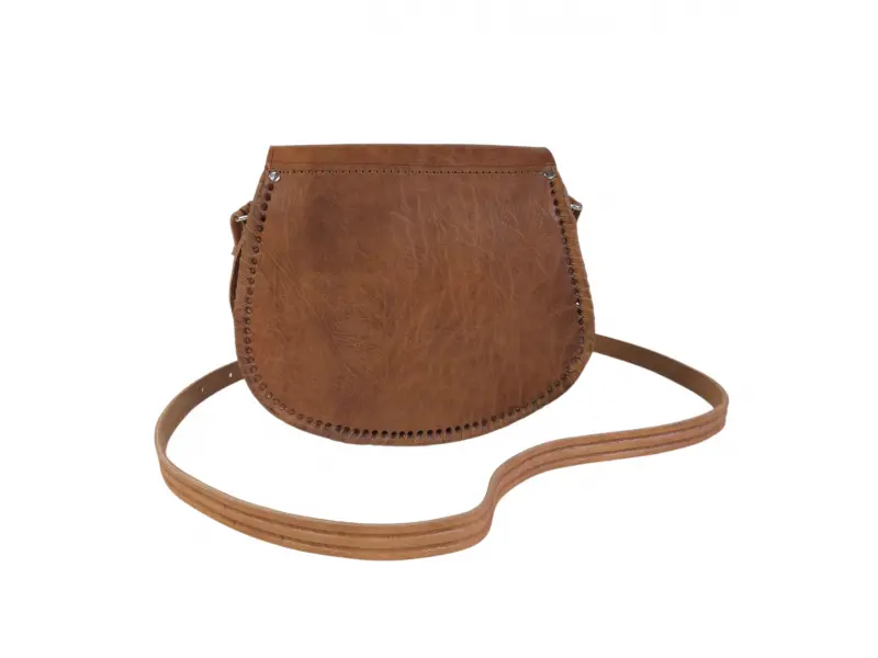 Мароканска дамска чанта - Дамска чанта от естествена кожа. - Едно основно отделение разделено на две. - Преден джоб с цип. - Дълга регулираща се дръжка.