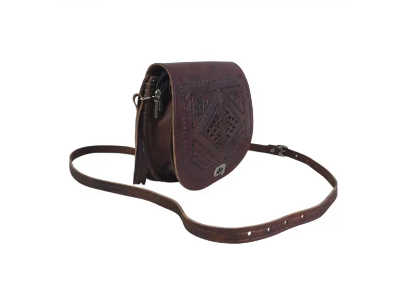 Кафява дамска чанта от естествена кожа, ръчно изработена. Мароканска дамска чанта с уникален дизайн. Стилна дамска чанта с удобна регулираща се дръжка. - ePazar.bg