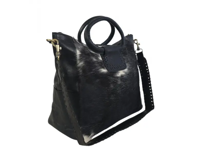 Черна дамска чанта от естествена кожа в съчетание с естествен косъм, ръчно изработена. Мароканска дамска чанта с уникален дизайн. Стилна дамска чанта с удобни дръжки. - ePazar.bg