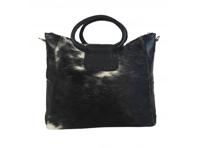 - Дамска чанта от естествена кожа в съчетание с естествен косъм.