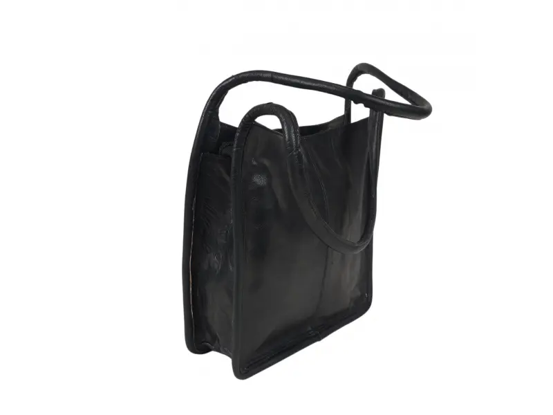 Черна дамска чанта от естествена кожа, ръчно изработена. Мароканска дамска чанта с уникален дизайн. Стилна дамска чанта с удобни дръжки. - ePazar.bg