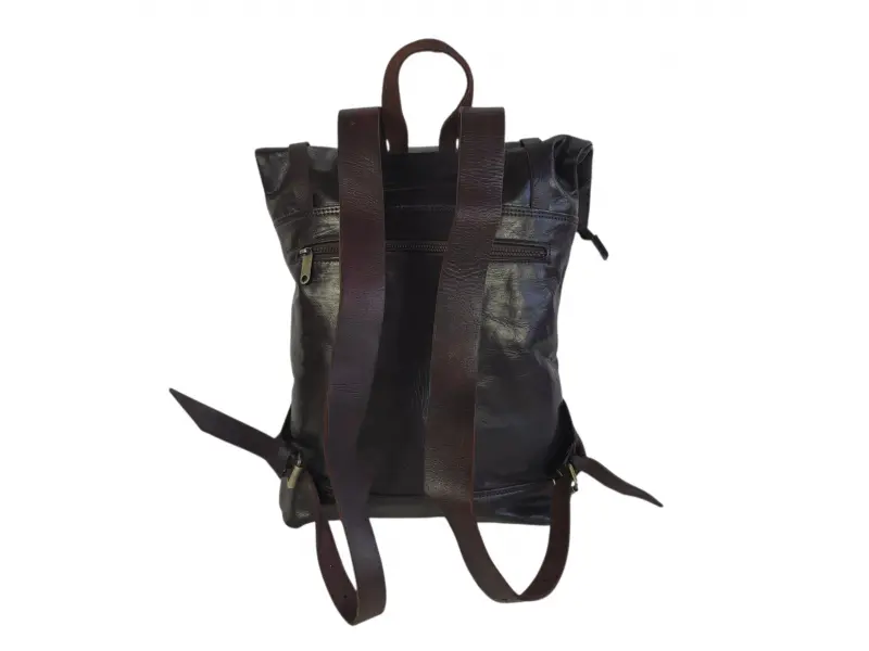 Тъмно кафява раница от висококачествена естествена кожа. Голяма раница с удобно разпределение и презрамки. Кожена раница произведена в Мароко.