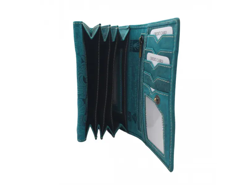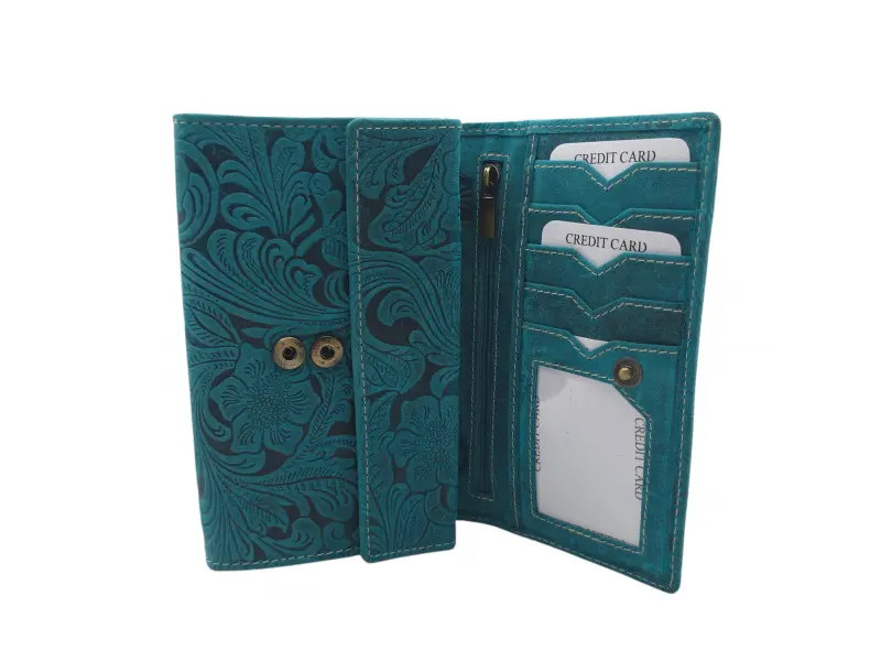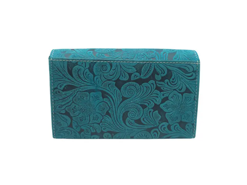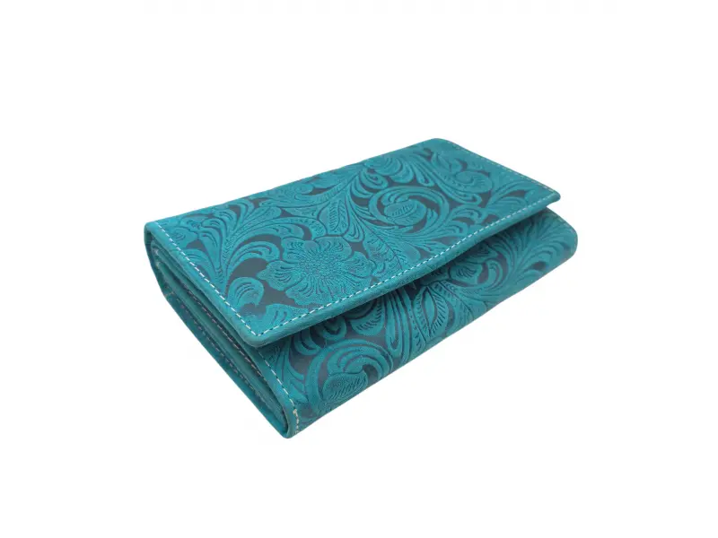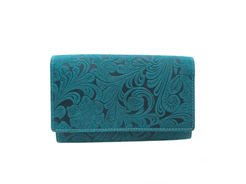 Зелено портмоне - ръчна изработка. Уникално дамско портмоне ръчно изработено от естествена кожа с щамповане. Качествено зелено портмоне от ePazar.bg