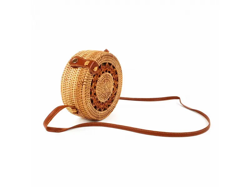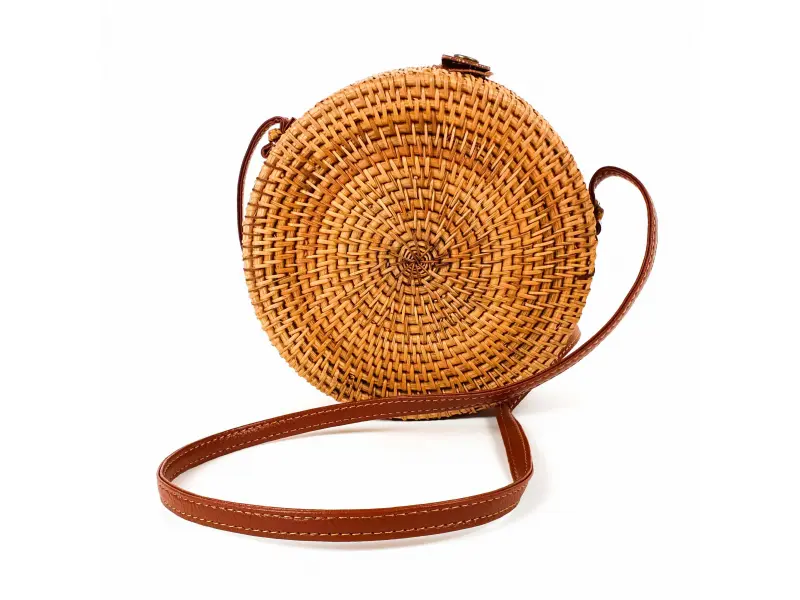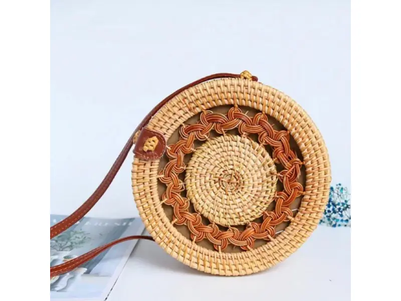 Кръгла дамска чанта от ратан