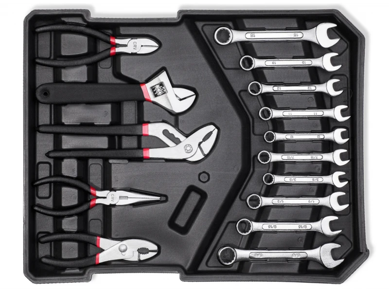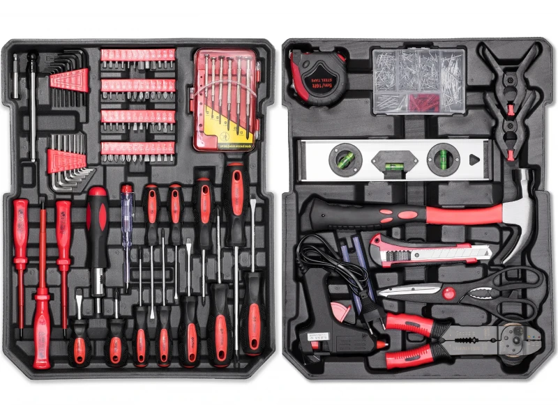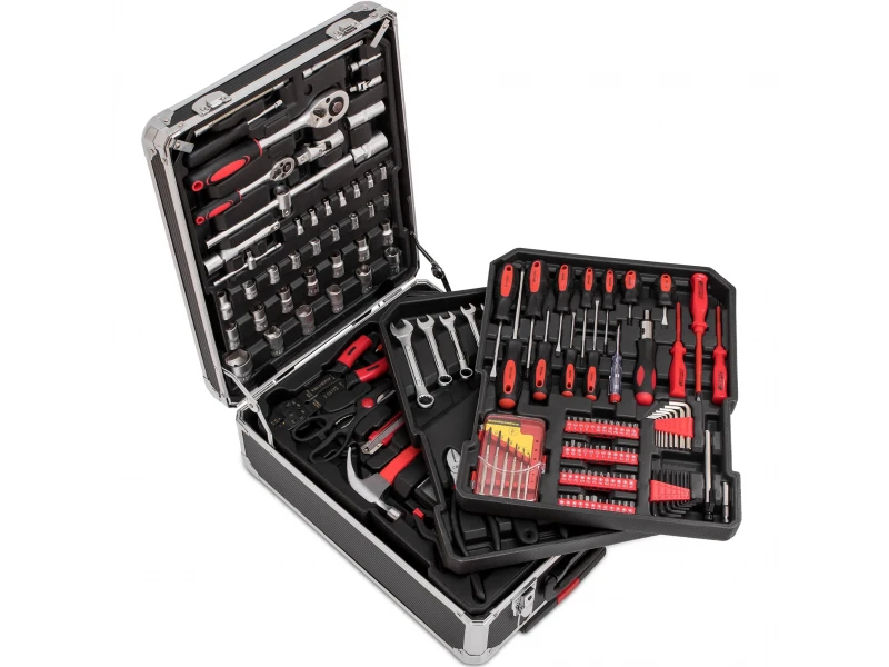 Този комплект ръчни инструменти от KraftRoyal включва всичко необходимо за професионални и аматьорски задачи. Събран в удобен куфар с колелца, комплектът е лесен за пренасяне и съхранение, а инструментите са подредени в специални профилирани кутии за лесен достъп и организация.