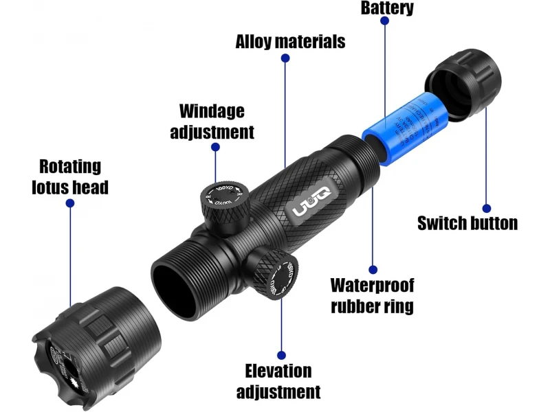 Зеленият мерник е подходящ за монтаж на пистолет, пушка, карабина и други огнестрелни оръжие.