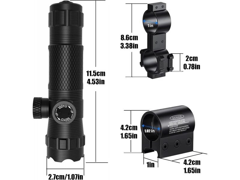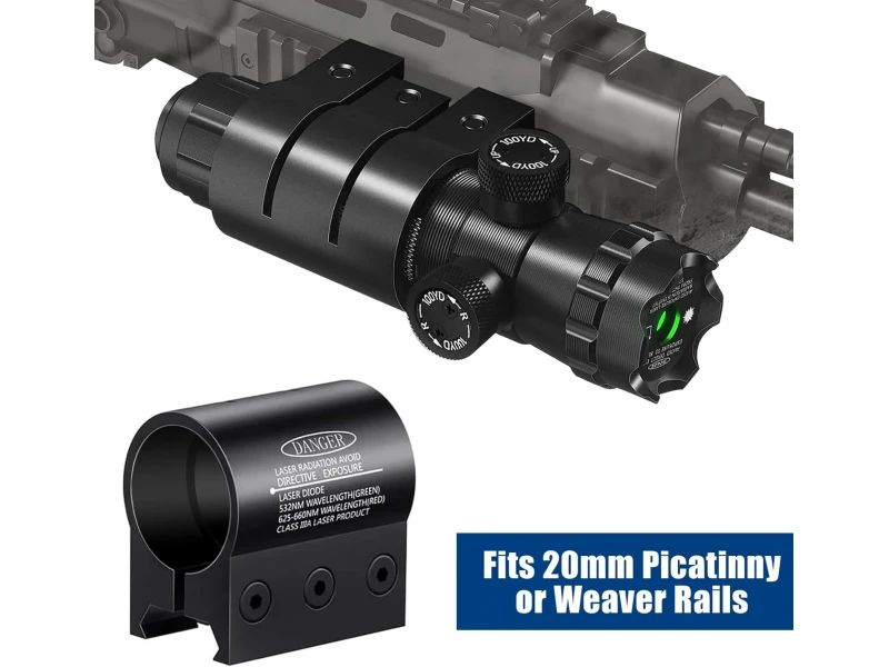 Лазерният прицел е оборудван с 2 монтажни стойки: 25-милиметрoва барел скоба с монтаж за фенер и 21 милиметров релсов държач, който може да държи лазера и да се побира на всеки 21мм ширина на тъкача.