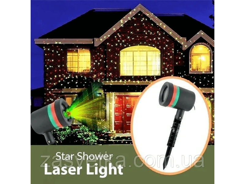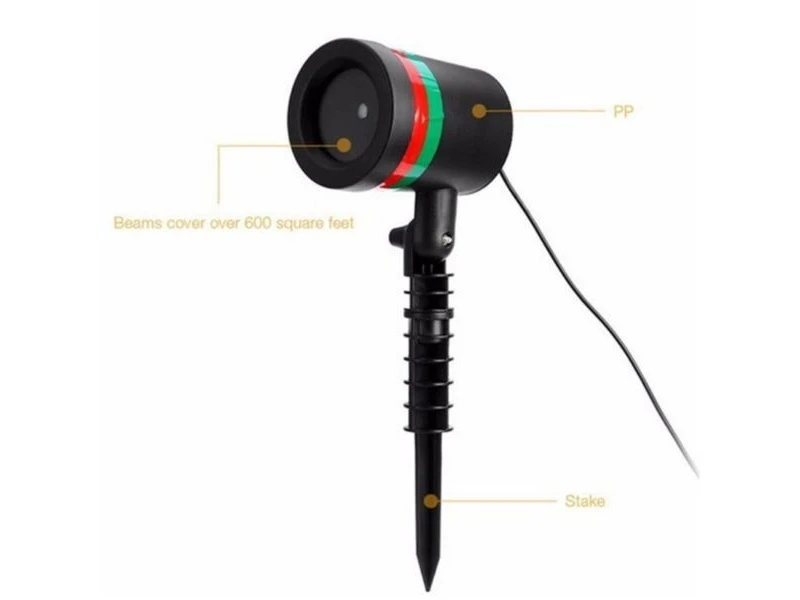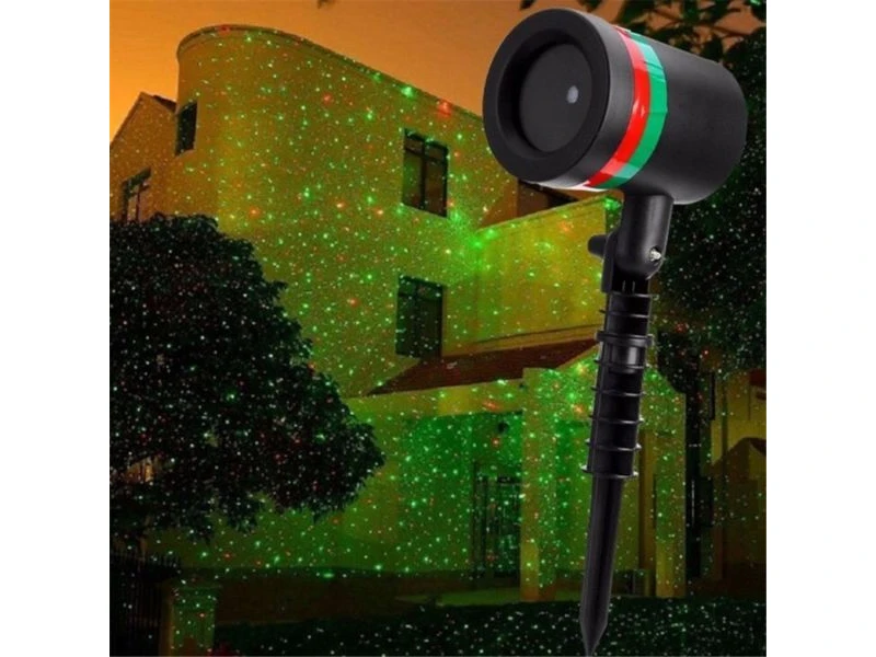 Уникален лазерен прожектор, Статичен и подвижен, 3D холографски ефект, За външна и вътрешна употреба. Над 100 движещи се блестящи точици! Водоустойчив Ip44.