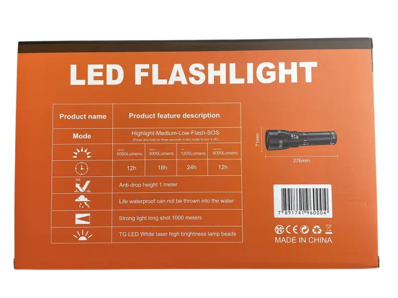 Фенер YEMAO YM-G600 – мощен LED фенер с далечен обхват до 1000 м 🔦⚡ YEMAO YM-G600 е високоефективен фенер с изключително силна и концентрирана светлина, подходящ за къмпинг, лов, риболов, охрана, работа на открито и аварийни ситуации . Разполага с TG LED бели лазерни мъниста с висока яркост, които осигуряват отлична видимост и далечен „изстрел“ на светлината до 1000 метра .✅ Режими на работа (5 режима)Фенерът предлага удобни режими за различни ситуации: ✔️ Светкавица (силна светлина) ✔️ Средна светлина ✔️ Ниска светлина ✔️ Светкавица ✔️ SOS режим 📌 Важна функция: ➡️ Натиснете и задръжте бутона 3 секунди във всеки режим, за да изключите фенера.💡 Мощност и време на работаФенерът комбинира силна яркост и икономичност според избрания режим: Силна светлина: 6000 лумена – до 12 часа Средна светлина: 3000 лумена – до 18 часа Ниска светлина: 1200 лумена – до 24 часа Светкавица / SOS: 6000 лумена – до 12 часа 🔋 Батерия и автономност В комплекта са включени 4 батерии с общ капацитет 6000 mAh , които осигуряват продължителна работа с едно зареждане и надеждност при продължително ползване. ✅ 4 клетки батерия – общо 6000 mAh ✅ Подходящ за дълги излети и работа без достъп до ток🛡️ Здравина и защитаYEMAO YM-G600 е създаден за ползване в реални условия и е устойчив на външни влияния: ✔️ Защита от падане от 1 метър ✔️ Водоустойчив корпус – подходящ за дъжд и влажна среда ✔️ Здрава конструкция за по-дълъг живот🔭 Далечен обхват и силно фокусирана светлина Фенерът осигурява далечен светлинен лъч до 1000 метра , което го прави отличен избор за: ✅ ориентация в тъмно пространство ✅ търсене и осветяване на далечни обекти ✅ охрана и патрул ✅ преходи и нощни приключения⭐ Предимства накратко ✅ Мощна светлина до 6000 лумена ✅ Обхват до 1000 м ✅ 5 режима + SOS ✅ Батерия 6000 mAh (4 клетки) ✅ Водоустойчив и удароустойчив (1 м) ✅ Удобно изключване с задържане 3 секунди