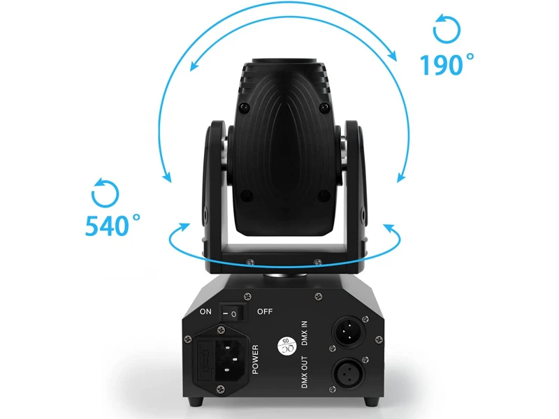 DMX функции: PGobo wheel, TILT, Dimmer, Dimmer Curve, автоматични програми, Gobo Shake, PAN PAN движение: 630 ° TILT движение: 235 ° Високоскоростен светкавица: 1Hz-20Hz