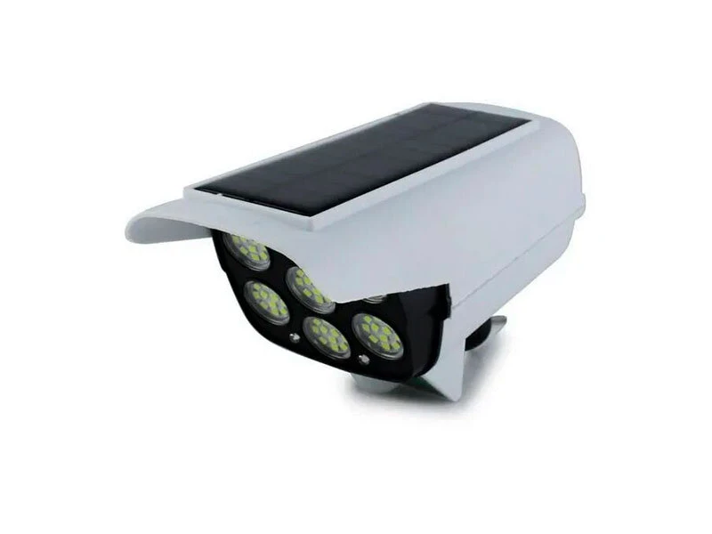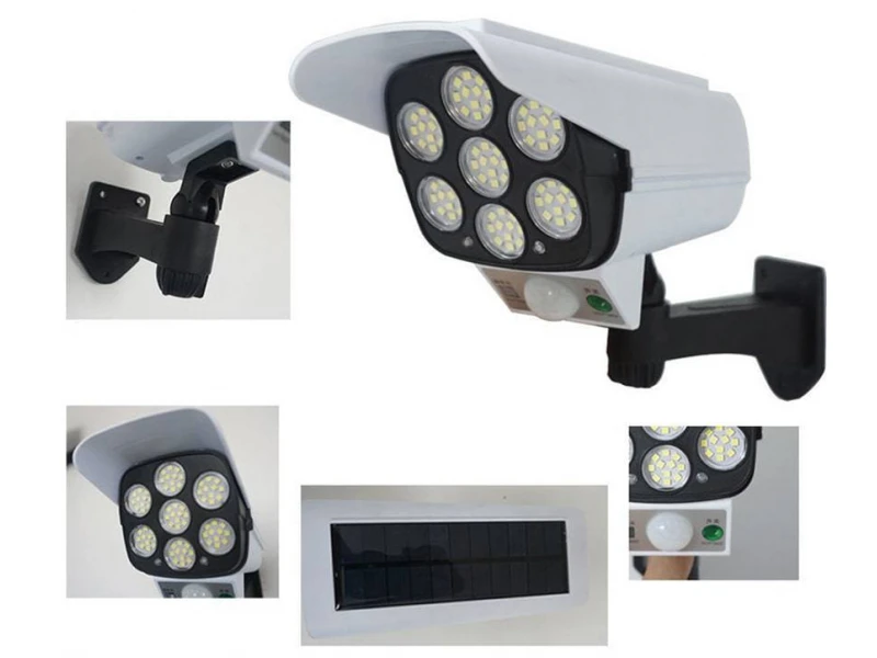 - Слънчева светлина и защитна имитация на наблюдателна камера 2 в 1 - Пазете дома си в безопасност от натрапници. Със 77 ярки светодиода, активиращи се с движение и елегантен дизайн с нисък профил. Плюс реалистична имитация на охранителна камера.