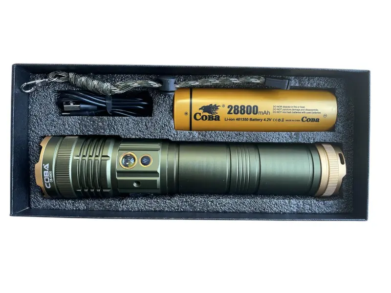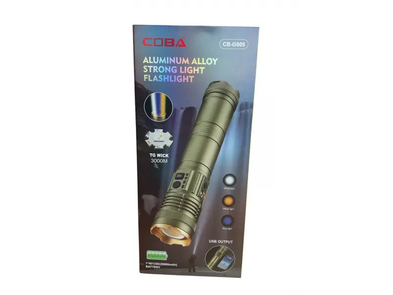 COBA CB-G905 е професионален трицветен фенер, създаден за хора, които търсят максимална яркост, издръжливост и функционалност при всякакви условия. Независимо дали сте любител на приключенията, работите на открито или търсите надеждно осветление у дома, този фенер комбинира иновативна TG фитил 3000м технология с устойчив дизайн и богат набор от възможности. Изработен от алуминиева сплав, фенерът е устойчив на износване и предлага противоплъзгащ захват за сигурност във всяка ситуация.