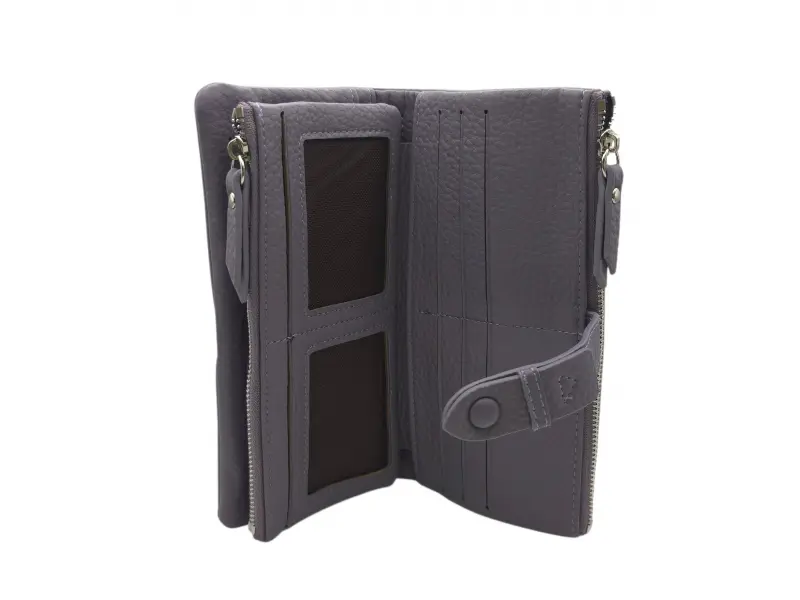 Дамско портмоне в нежен лилав цвят - Дамско портмоне от еко кожа. - Закопчаване с копче тик-так. - Отделения за карти и лични документи. - Отделение за банкноти. - Отделения за монети с цип.