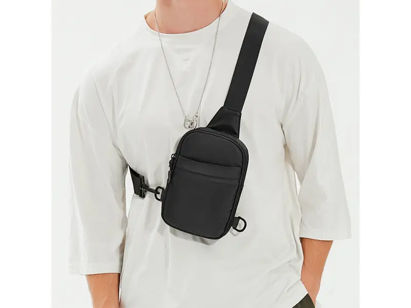 - Мъжка чанта, която може да се носи през гърди, рамо или гръб тип раница.