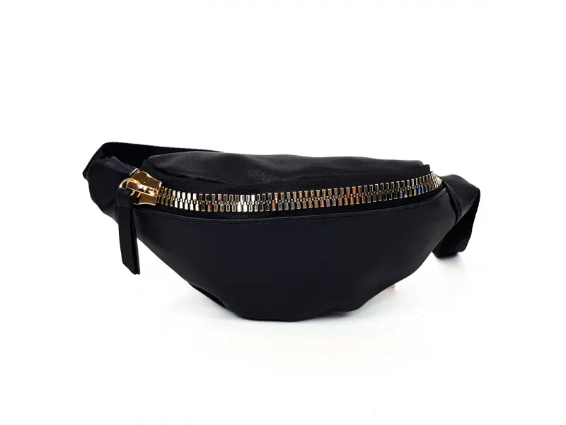 Малка чанта за през кръста. Интересна дамска чанта за през кръста от еко кожа със златен цип. Дамска паласка с колан от полиестер от онлайн магазин ePazar.bg