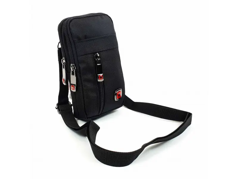 Малка мъжка чанта от висококачествен плат. Мъжка чанта с две основни отделения, два предни джоба с цип и без цип. Здрава чанта с дълга регулираща се дръжка и възможност за закачане и поставяне на колан.
