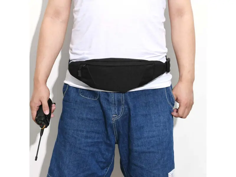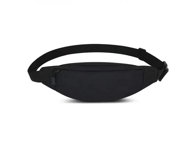 Малка спортна чанта - August от здрав и качествен плат. Удобна чанта с две отделения затварящи се с цип, регулиращ се колан. Унисекс чанта за през кръста в черен цвят - ePazar.bg