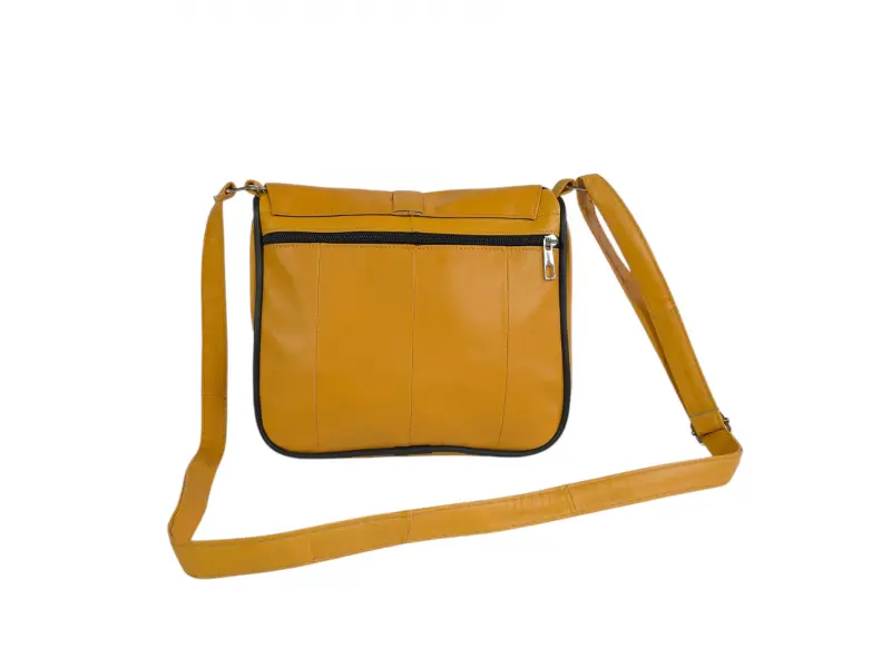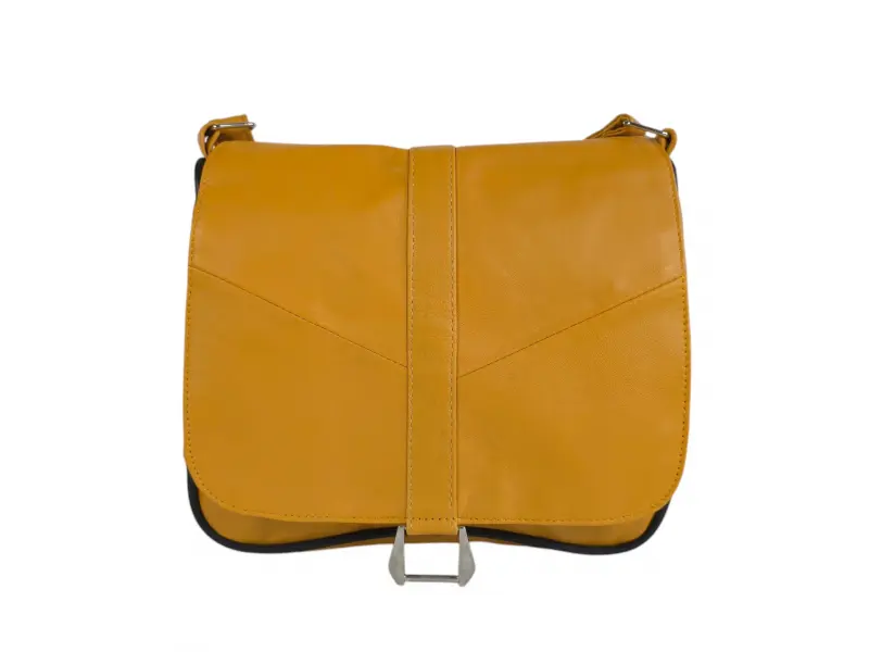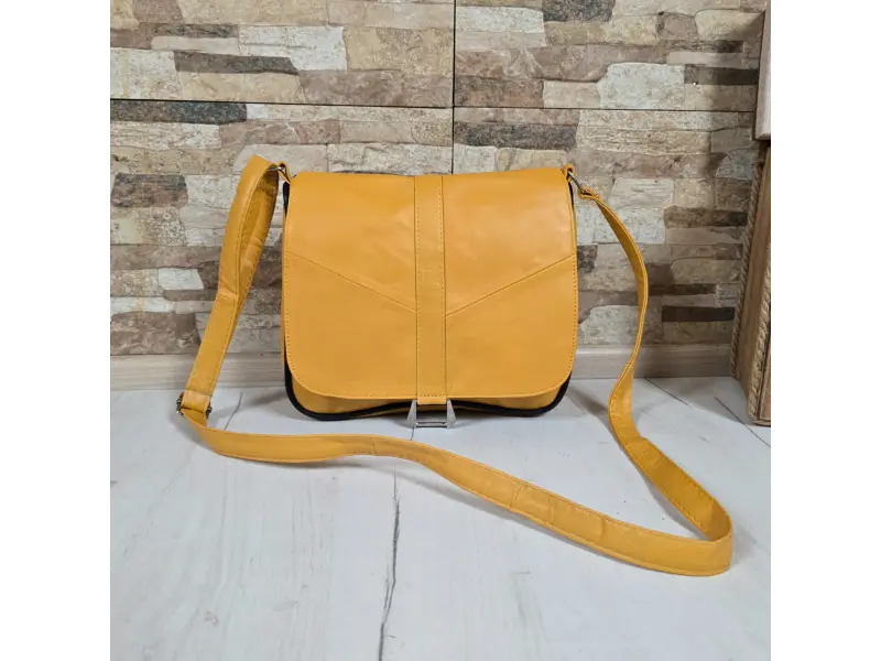 Жълт дамска чанта от естествена кожа. Малка дамска чанта с удобни отделения с цип и дълга регулираща се дръжка. Нов модел дамска чанта от естествена кожа.