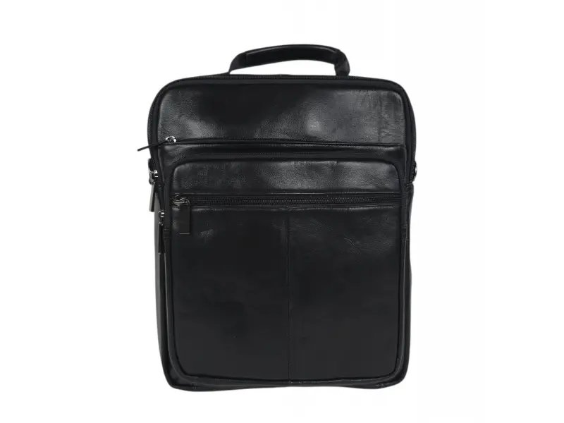 Стилна кожена мъжка чанта - Две основни отделения с цип. - Малък вътрешен джоб с цип. - Три предни джоба с цип. - Заден джоб с цип. - Дръжка за ръка. - Регулираща се презрамка.