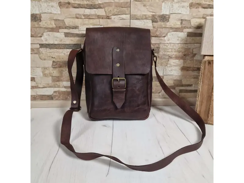 Мъжка чанта с катарама - Leat. Здрава мъжка чанта от естествена кожа в интересен кафяв цвят и затваряне с метална катарама. Качествена мъжка чанта, която е ръчна изработка внос от Мароко.