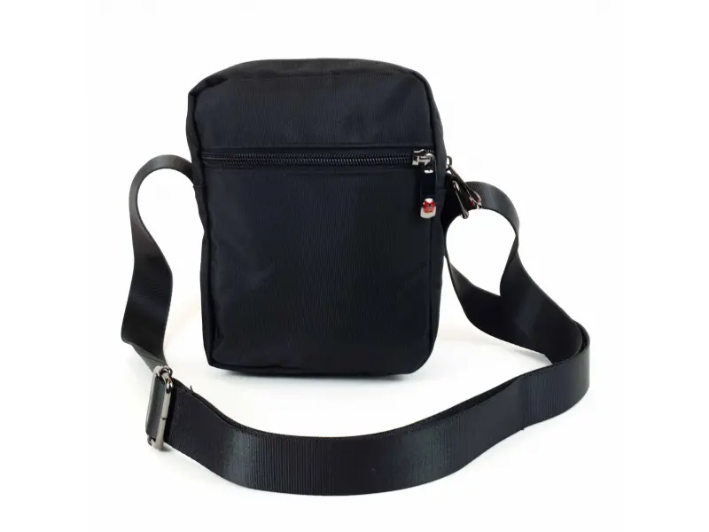 Качествена мъжка чанта от здрава материя тип плат и дълга, регулираща се дръжка от полиестер. Удобна чанта с едно голямо отделение с вътрешен джоб с цип, средно и предно отделение с цип и заден джоб с цип.