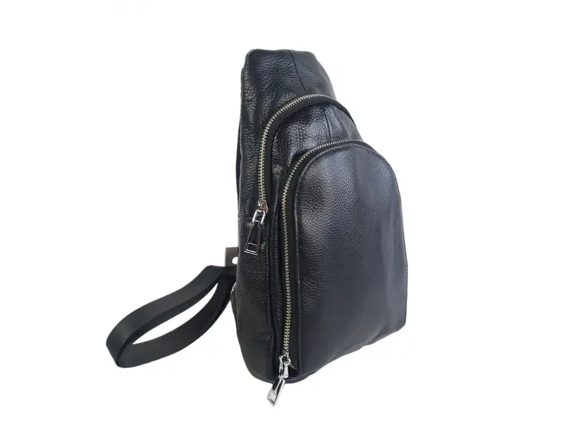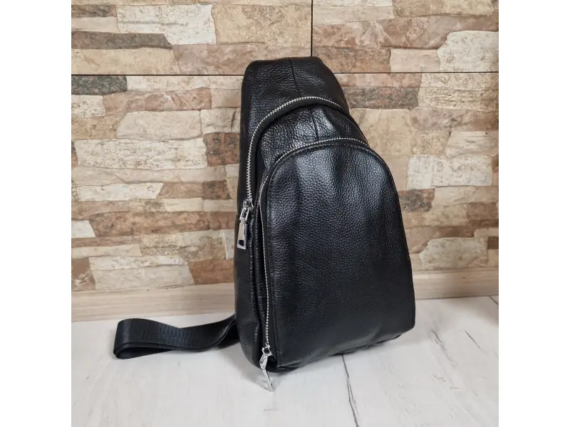 Стилна мъжка чанта за през гърди - Мъжка чанта от естествена кожа. - Мъжка чанта, която може да се носи през гърди, рамо или гръб тип раница. - Едно основно отделение с цип. - Вътрешно джобче с цип. - Преден джоб с цип. - Удобен гръб. - Регулираща се презрамка. - Възможност за смяна на посоката.