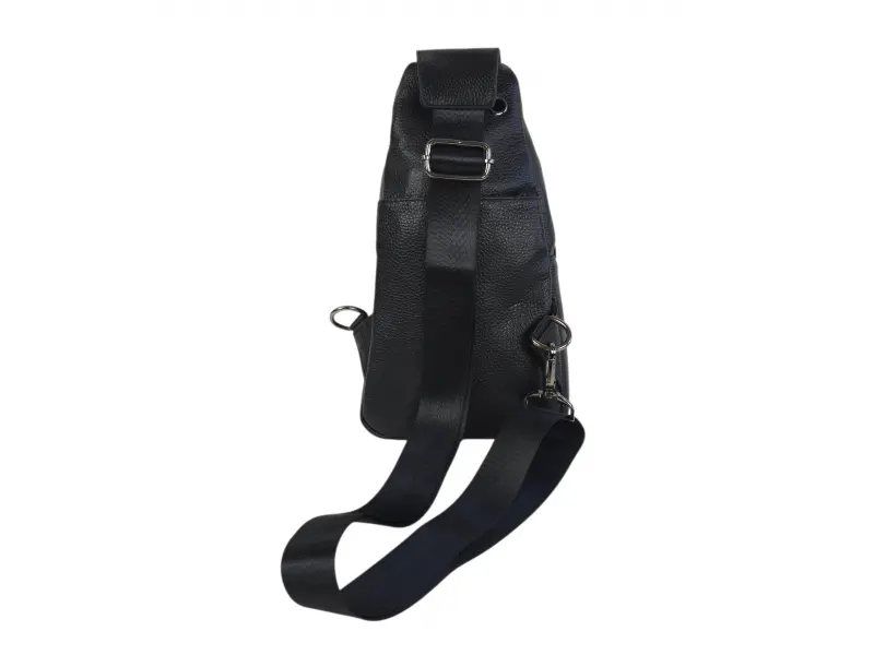 Мъжка чанта от естествена кожа в черен цвят. Чанта за през гърди, която може да се носи и на гърба тип раница. Кожена мъжка чанта с удобни отделения и здрави ципове с удобна презрамка.