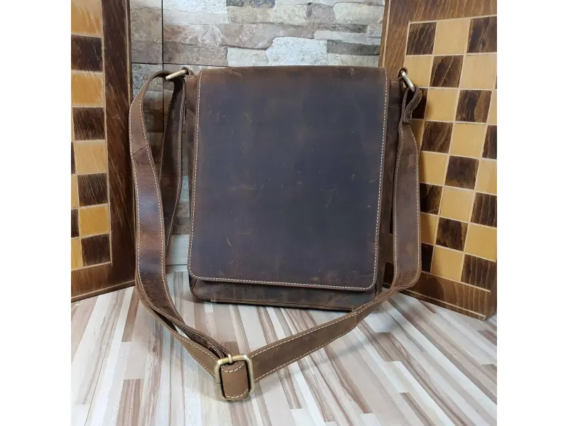 Мъжка чанта - Zeus. Голяма мъжка чанта от телешка естествена кожа със специална обработка - Hunter. Качествена кафява мъжка чанта с капак, страхотен подарък за мъж - eBags.bg