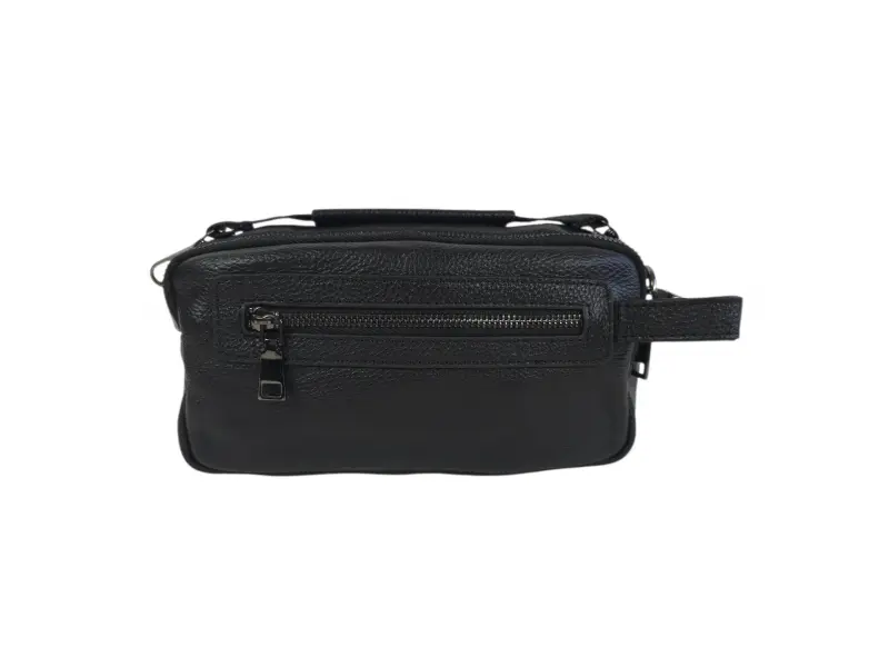 Стилна кожена мъжка чанта тип клъч - Три основни отделения с цип. - Малък вътрешен джоб с цип. - Преден джоб с цип - Заден джоб с цип. - Възможност за две дръжки за ръка. - Възможност за регулираща се дълга презрамка.
